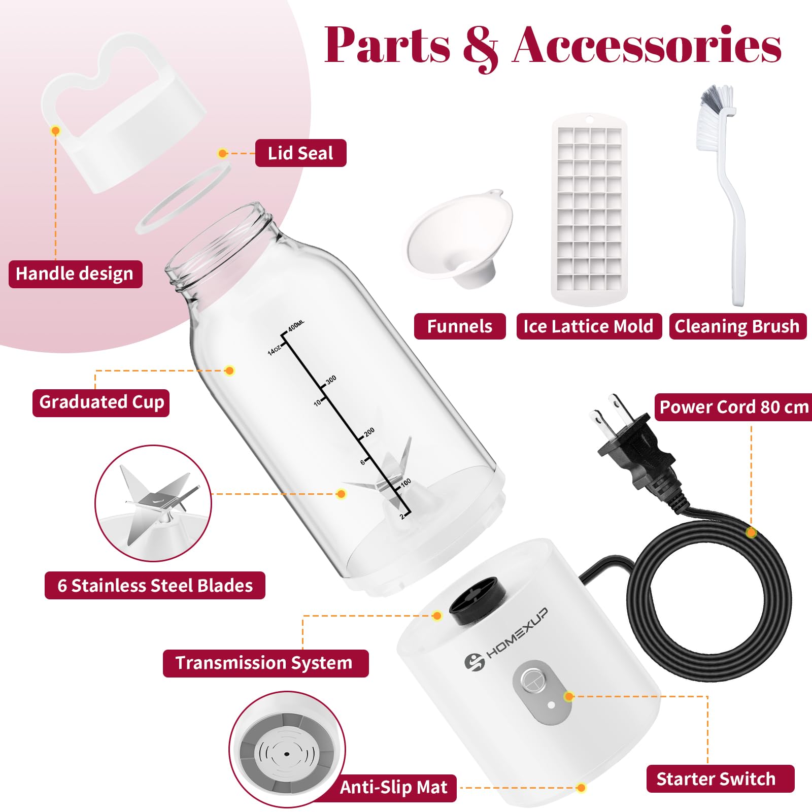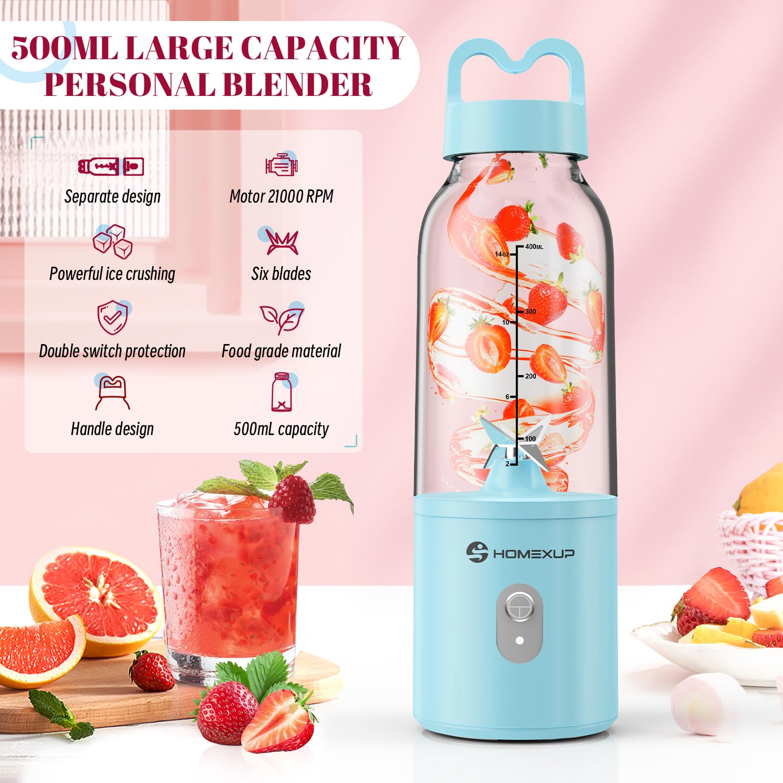 Portable Personal Blender 17 OZ/500 ML Juicer, 175W Personal Size Blender, Ideal for Smoothies, Ice Blending, Juicing, and Food Processing, Compact, Convenient, and Versatile (Pink)